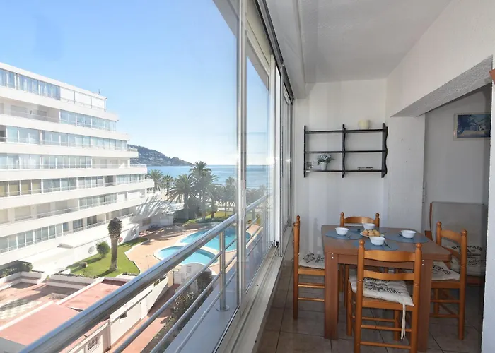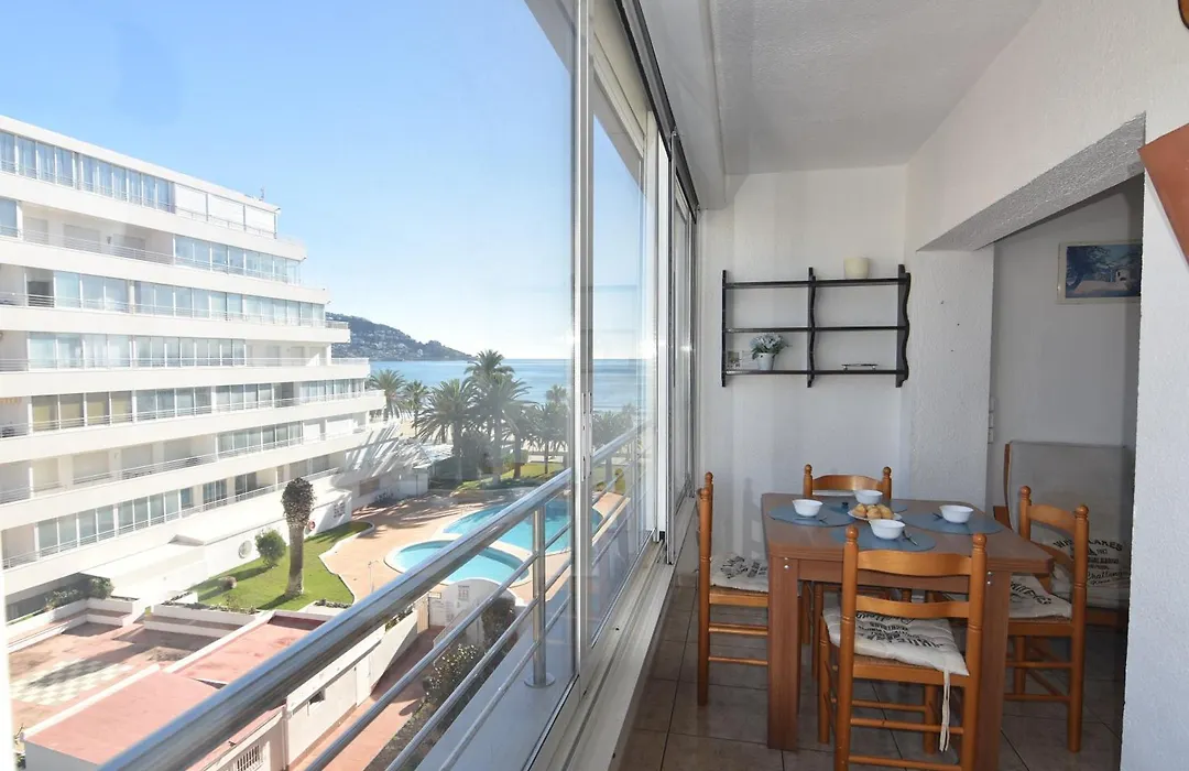 The apartment overlooks the pool and comprises a terrace, a sitting area, and a living room with a washing machine. Rnet - Rhc 1410 Roses Holiday Center apartment features a bathroom with a hair dryer and towels. You'll also come across a separate toilet and a shower.